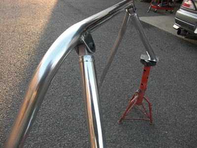 この0.4mm厚の差からクロモリ製のロールケージを装着することによって、装着時の重量増を抑えることが可能になります。